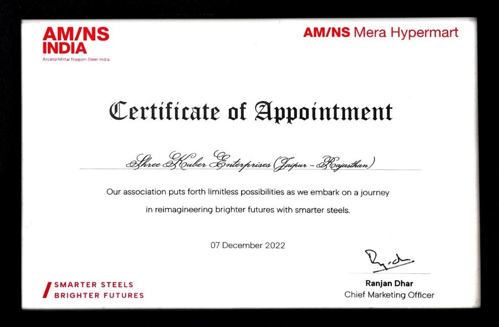 We also deliver the aforesaid Iron and Steel products to our more than 1000 Wholesalers and retailers and also cater to some of the institutions. As we procure our products from AMNS India, our product is highly appreciated in the market for its optimum finish, durability, high strength, quality, etc. We are always providing the end-to-end best service to our clients. Kuber Aditya Infra has covering sheds with the capacity to keep 1500 M.T. Iron and Steel materials at a time.